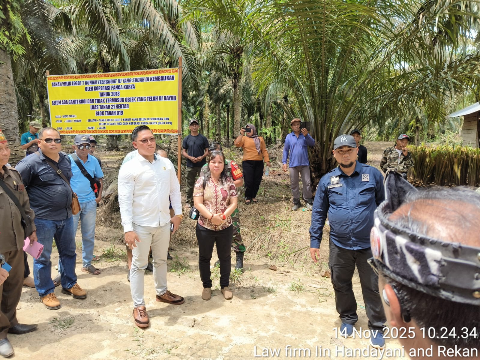 Selanjutnya menurut kuasa hukum T1 dan T2, “dalam sidang lapangan ini terlihat jelas bahwa ketua koperasi Panca Karya melakukan gugatan kepada T1 dan T2 harus tau letak objek gugatannya. Setelah diadakannya sidang lapangan ini penggugat yang mengaku memiliki lahan objek diminta menunjukkan batas dia sendiri bingung dan keterangannya berubah-ubah dari yang awalnya menunjuk di sini kemudian pindah lagi ke lain, di situ kan sudah membuktikan bahwa sebenarnya penggugat tidak bisa membuktikan dalil-dalil gugatannya.
