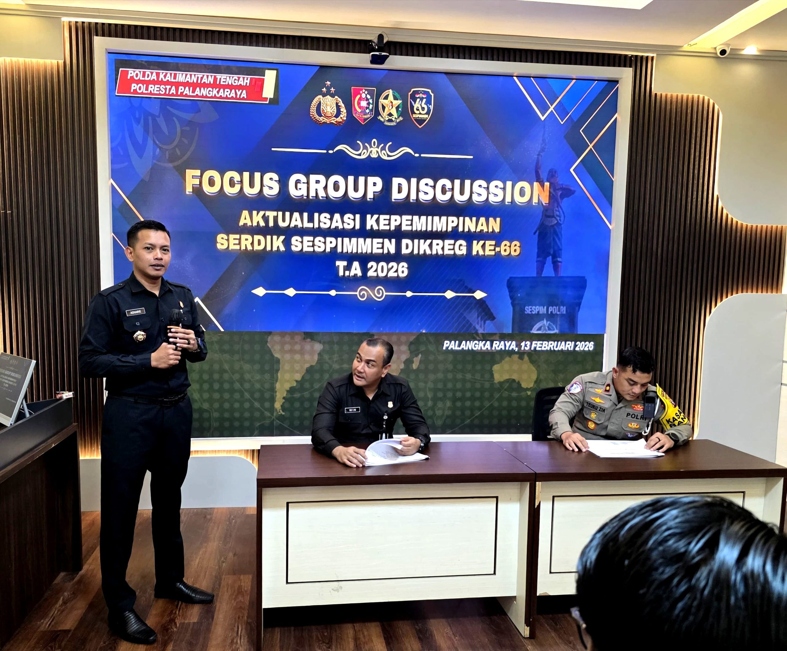 MONITOR KREATIF, Palangka Raya — Direktorat Reserse Kriminal Khusus (Ditreskrimsus) Polda Kalimantan Tengah menggelar Focus Group Discussion (FGD) bertema aktualisasi kepemimpinan peserta didik Sekolah Staf dan Pimpinan Menengah (Sespimmen) Dikreg ke-66 Tahun Anggaran 2026, Jumat, 13 Februari 2026.